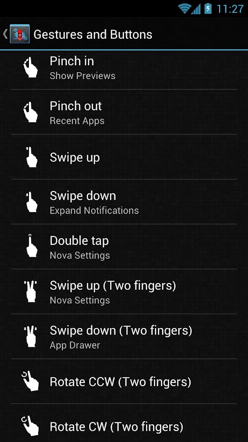 Quickly start Nova Actions or Apps from gestures on the desktop, such as pinching, swiping or two-finger swiping.